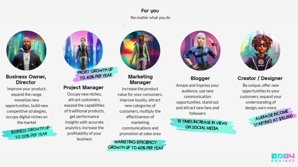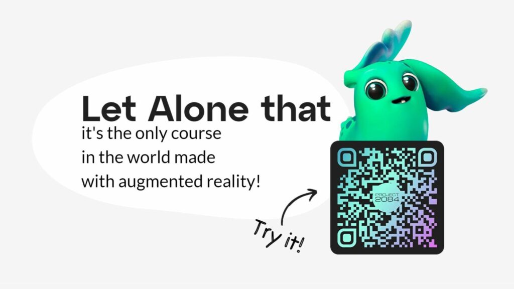 Project 2084 includes one month of online training with new lessons every week (more than 30 lessons and tasks), everything about AR technology and its market, networking in the community of like-minded people and free access to MyWebAR platform.