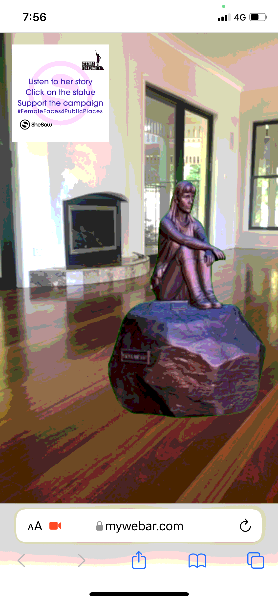 Donna’s most exciting endeavor within SheSaw is the development of an app that leverages Augmented Reality (AR) to increase the visibility of women worldwide. The app offers self-guided walks where users can unlock AR statues via their smartphone cameras. These statues tell the stories of local women who have left their mark on the area. Currently, only 4% of statues globally are dedicated to women, and Donna believes it’s time to change that. Traditional statues require substantial resources and often fail to communicate the individual’s impact. SheSaw’s virtual statues provide an affordable, sustainable, and engaging alternative, allowing anyone to commission a virtual statue to honor women who have made a positive impact.