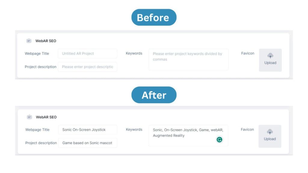 How to: Sign in to your MyWebAR account, open your project, go to settings, and add webAR SEO information. Add webpage title, keywords or project description.