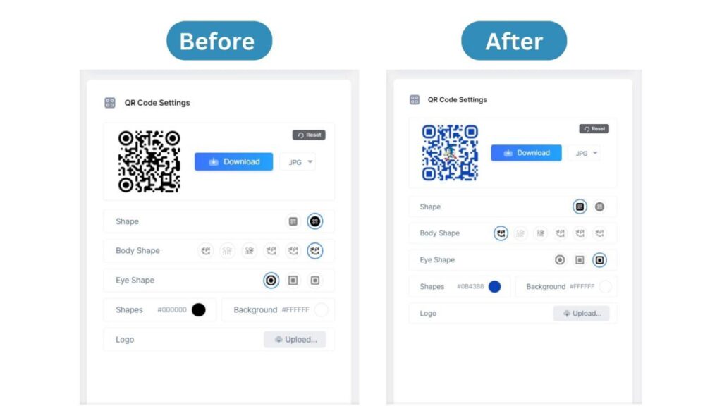 How to: Sign in to your MyWebAR account, open your project, go to settings, and customize your QR code. Change body shape, eye shape, and colors, or even add a logo to the QR code.
