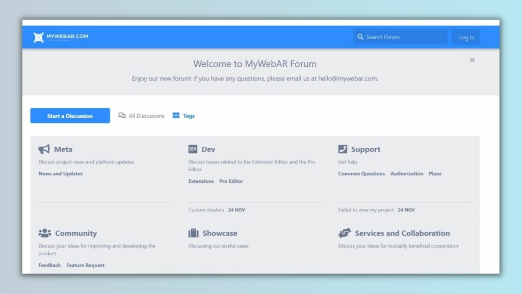This is a MyWebAR knowledge base for everyone, who wants to learn more about the platform and webAR at all.