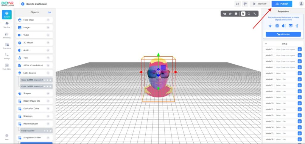 Click Publish to go live. Open the link on a phone and test like a real customer: switch between frames, check the fit, and see how it behaves in different lighting.